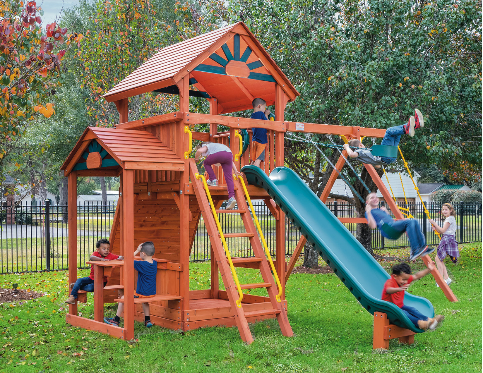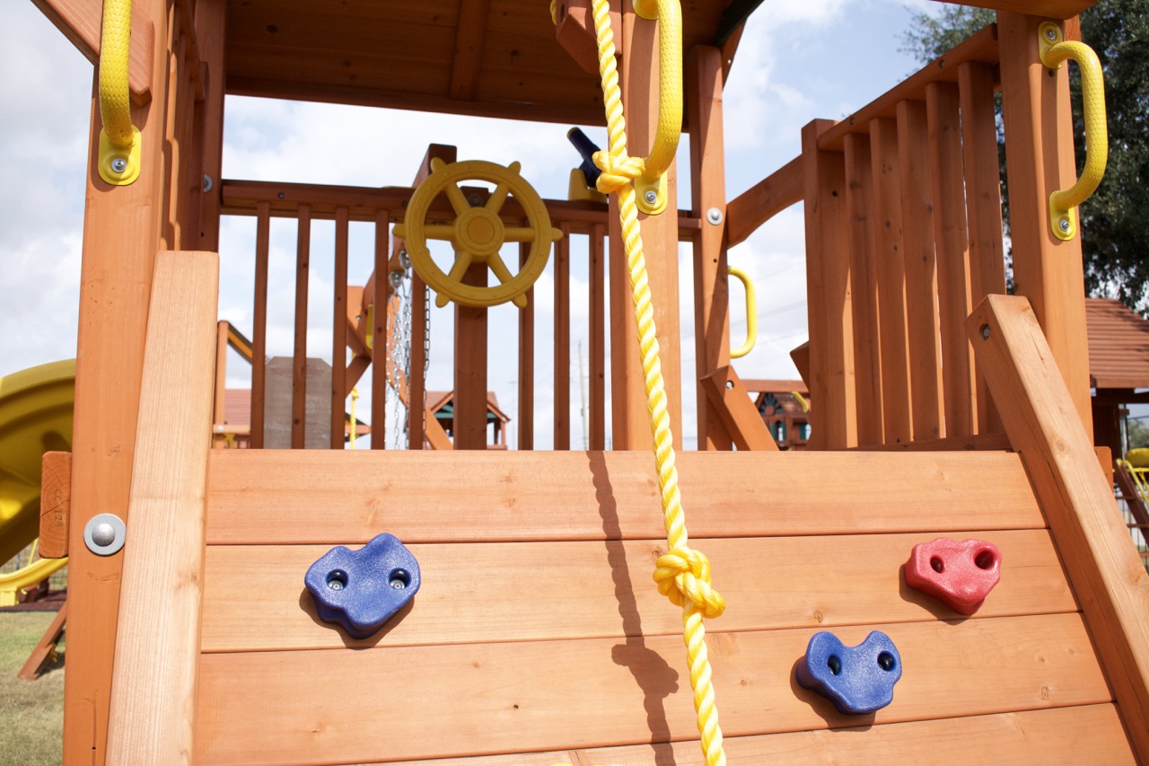 Tree Frogs playlets are designed with safety as our priority. We want our customers to have peace of mind that what they are investing in is as safe as possible. Every swing set is made with recessed hardware and smooth wood, as well as coated chains so fingers don’t get pinched.