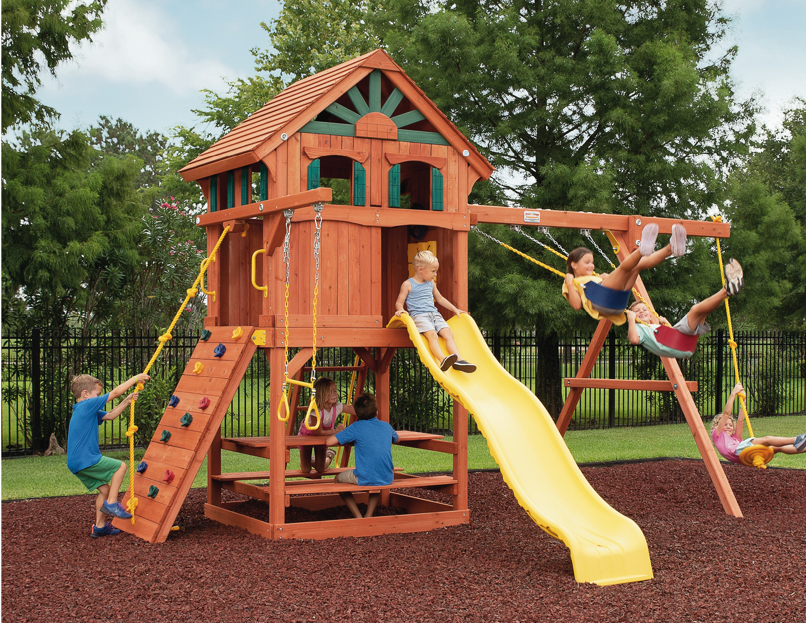 Tree Frogs playlets are designed with safety as our priority. We want our customers to have peace of mind that what they are investing in is as safe as possible. Every swing set is made with recessed hardware and smooth wood, as well as coated chains so fingers don’t get pinched.