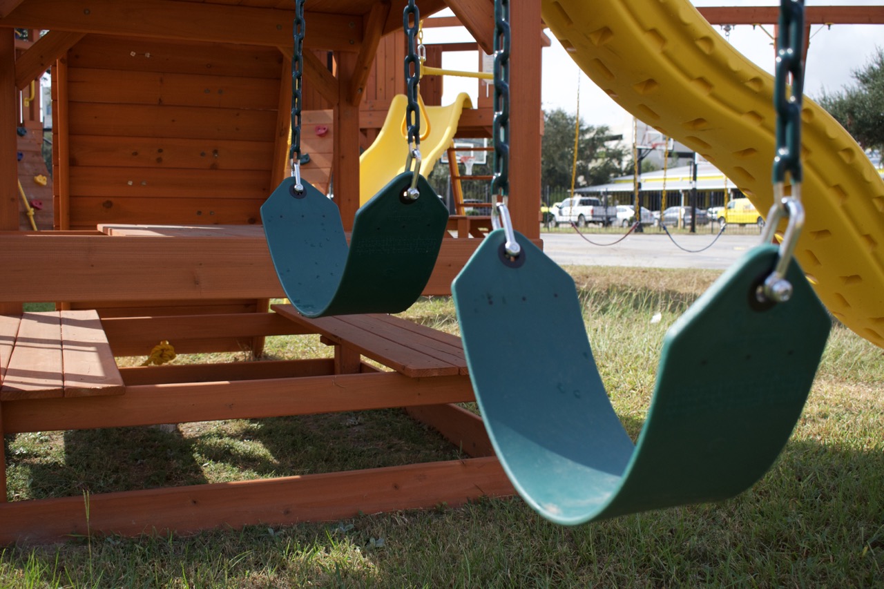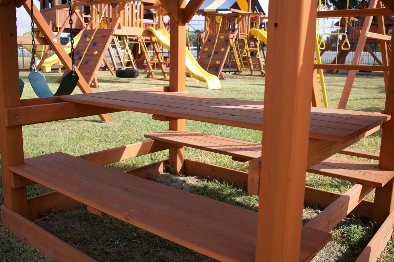 Our swing sets are well-constructed, with no dangerous metal protrusions, and are even strong enough to support heavy adults. Our support gussets are one piece of timber that is notched for superior strength. We recess our hardware for safety and to keep the play set looking beautiful. Your strong, beautiful play set will last for years outdoors and hold a special place in your kid’s memories for life. Our standard swing beams are constructed of 4×6 solid lumber, never laminated. Built for years of sturdy, safe play.
