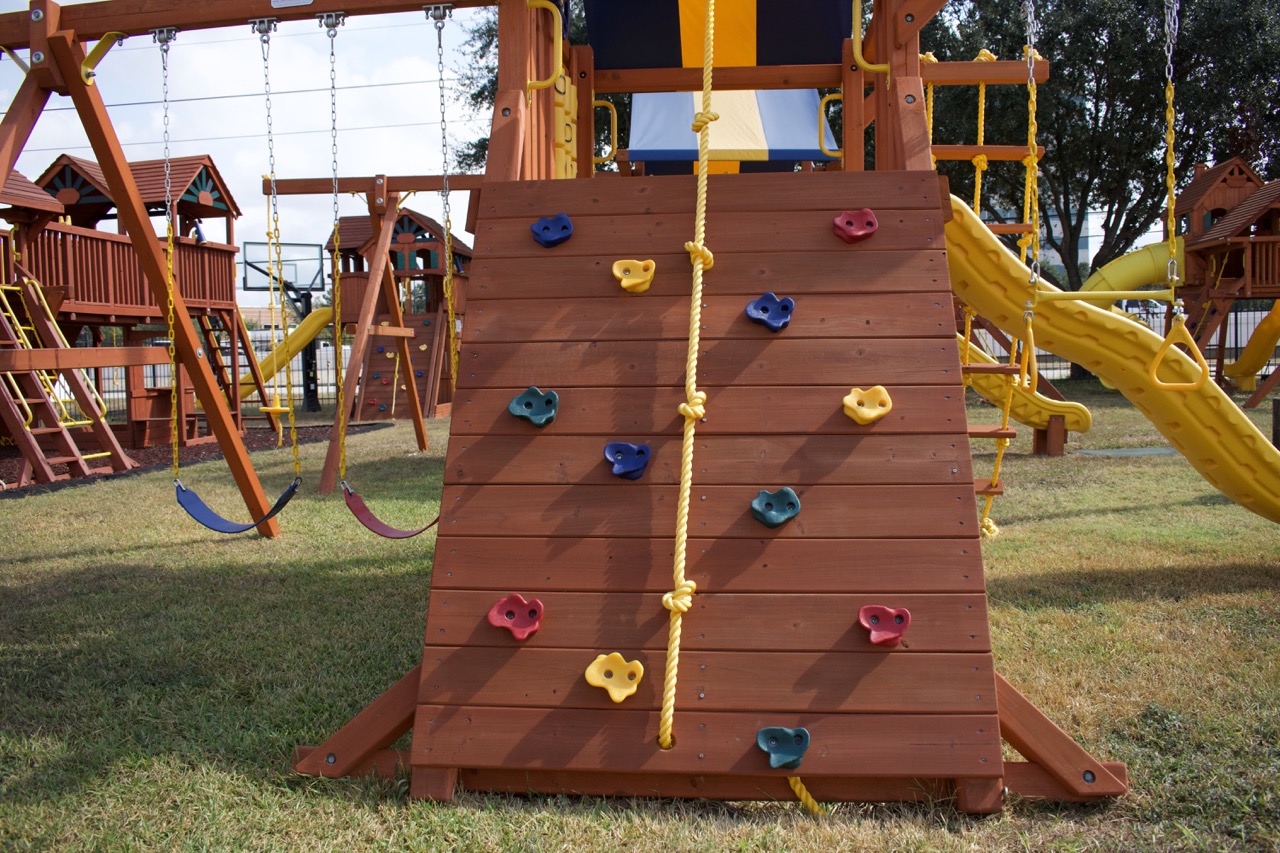 Tree Frogs playlets are designed with safety as our priority. We want our customers to have peace of mind that what they are investing in is as safe as possible. Every swing set is made with recessed hardware and smooth wood, as well as coated chains so fingers don’t get pinched.