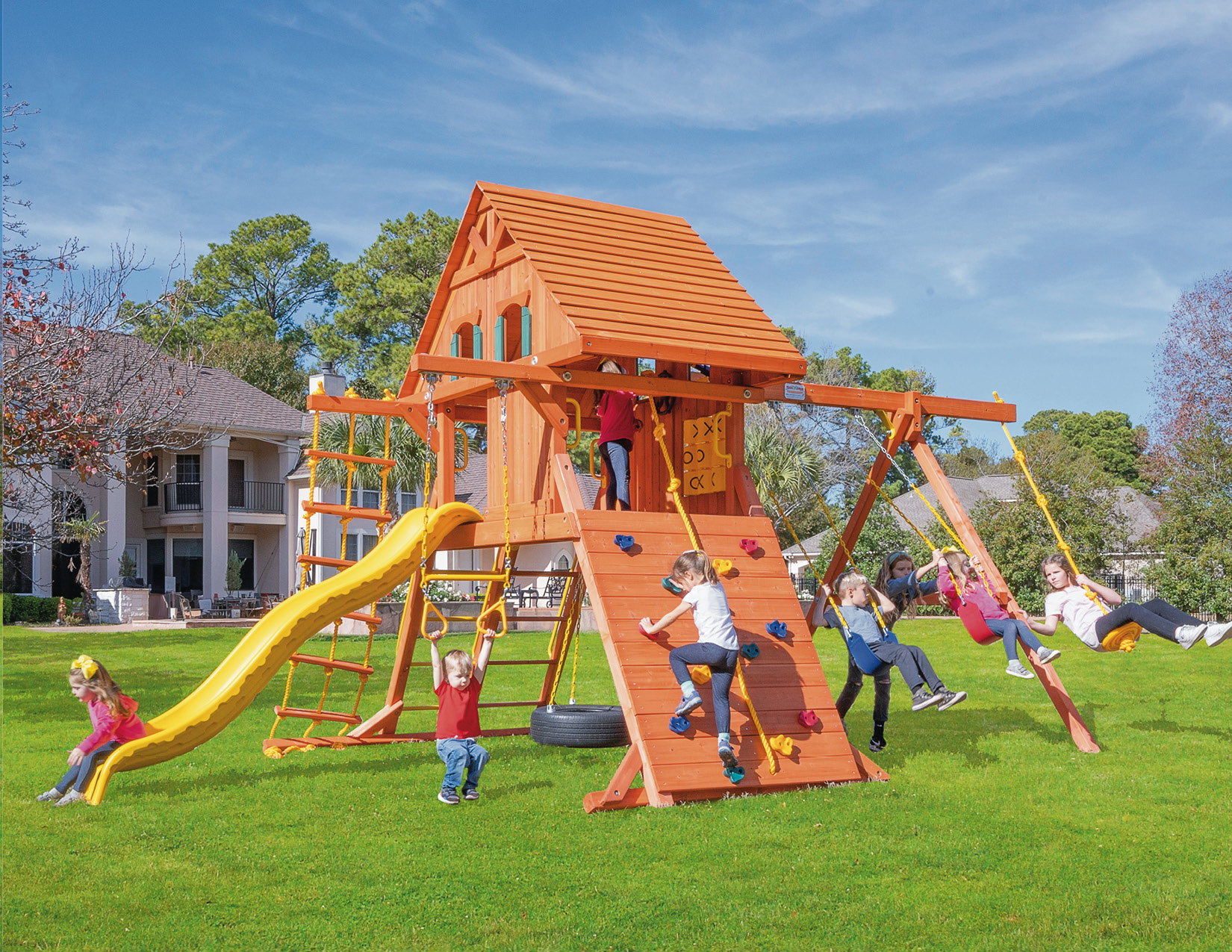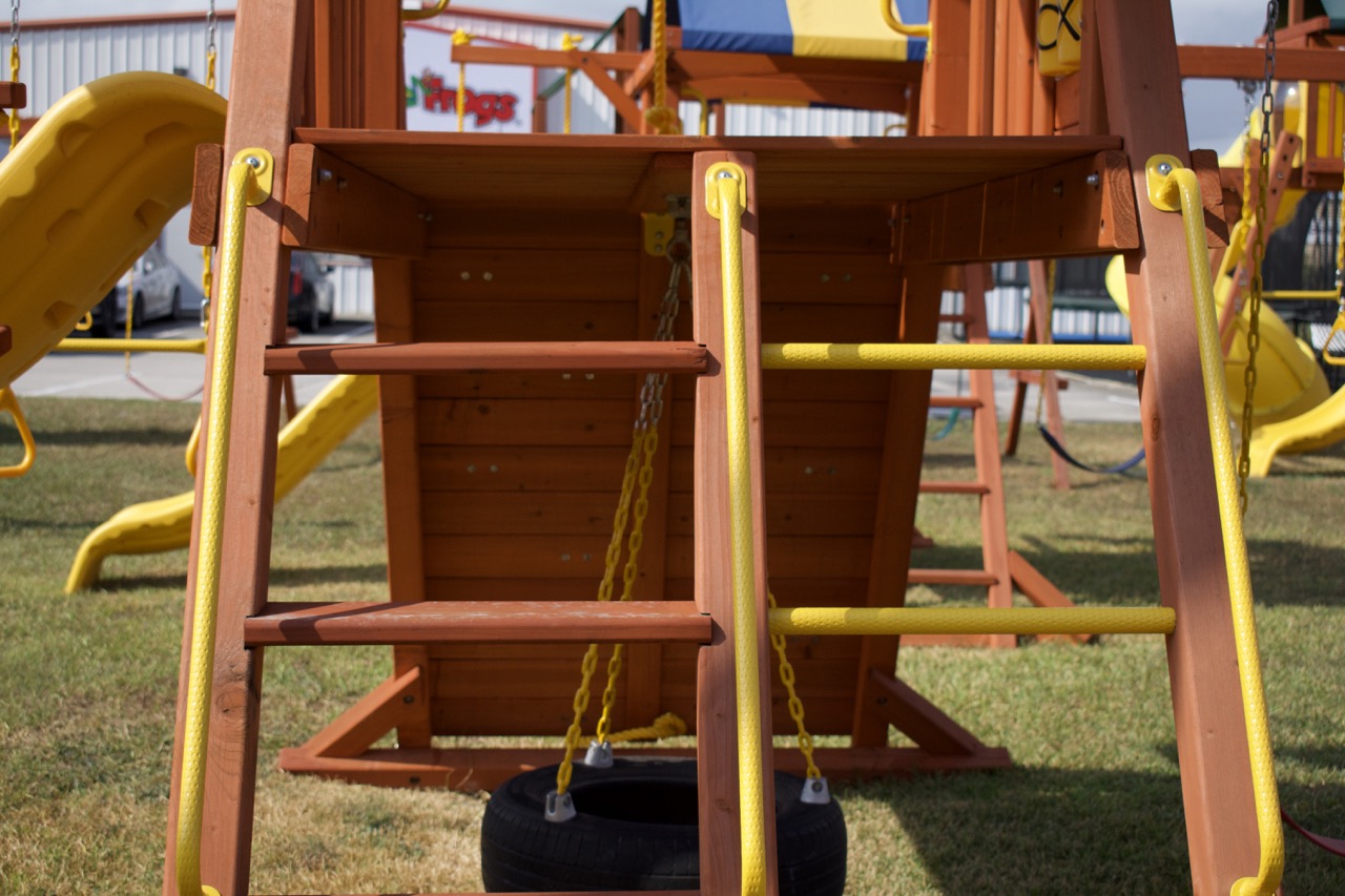 Tree Frogs playlets are designed with safety as our priority. We want our customers to have peace of mind that what they are investing in is as safe as possible. Every swing set is made with recessed hardware and smooth wood, as well as coated chains so fingers don’t get pinched.