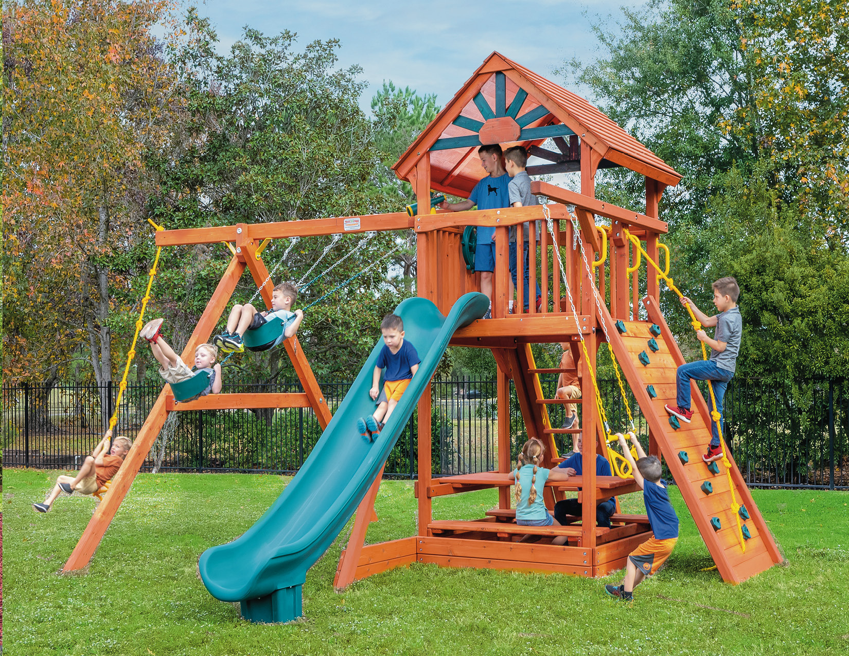 Tree Frogs playlets are designed with safety as our priority. We want our customers to have peace of mind that what they are investing in is as safe as possible. Every swing set is made with recessed hardware and smooth wood, as well as coated chains so fingers don’t get pinched.