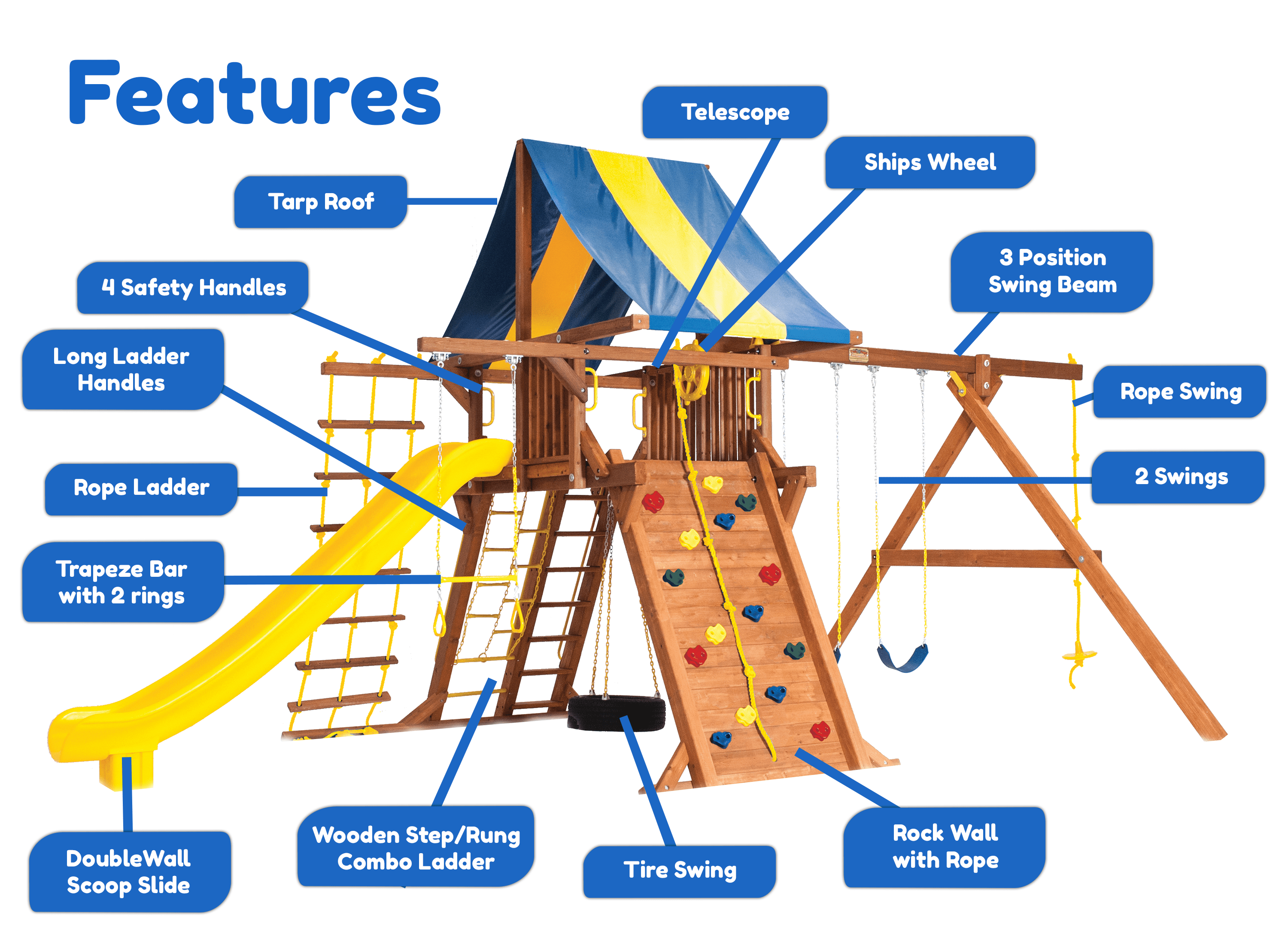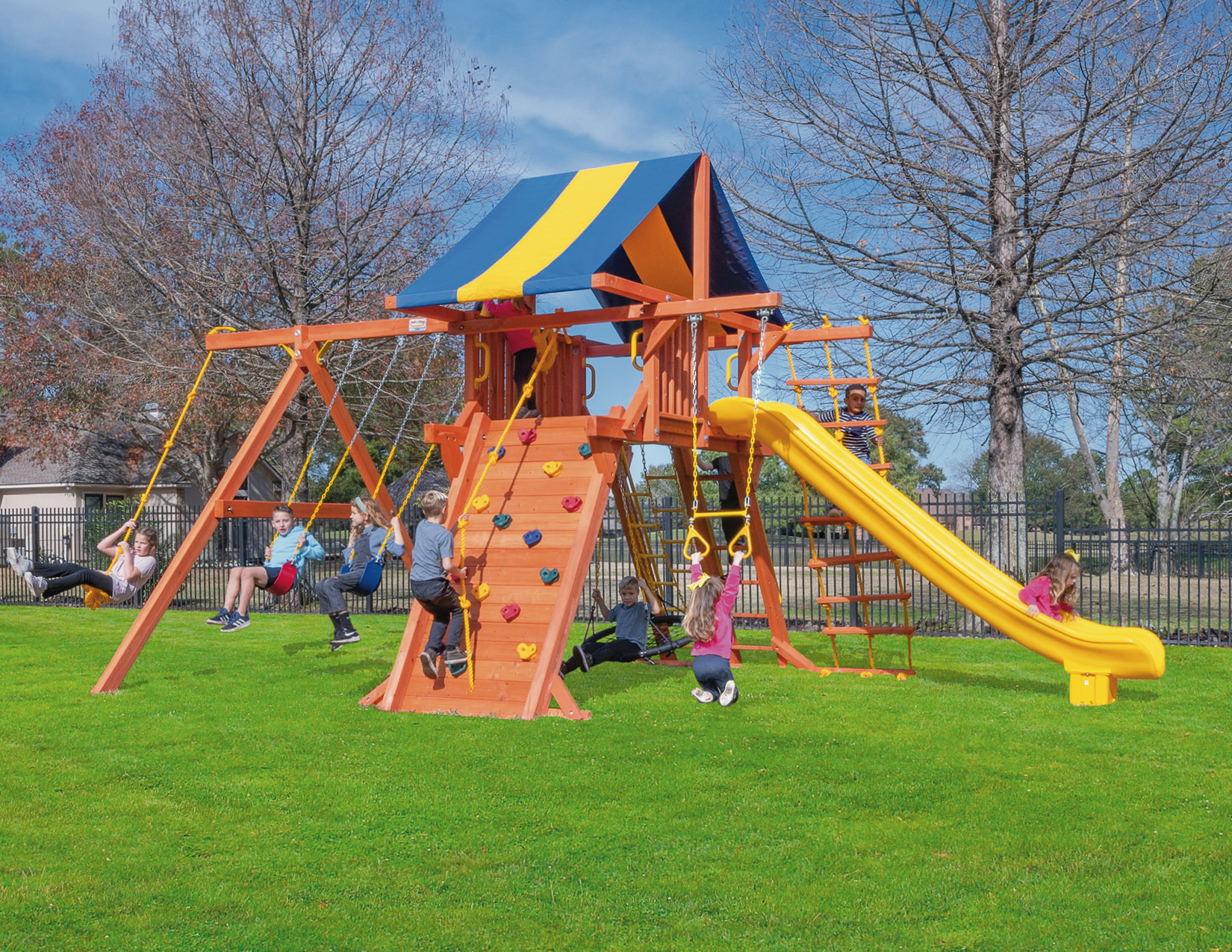 Tree Frogs playlets are designed with safety as our priority. We want our customers to have peace of mind that what they are investing in is as safe as possible. Every swing set is made with recessed hardware and smooth wood, as well as coated chains so fingers don’t get pinched.