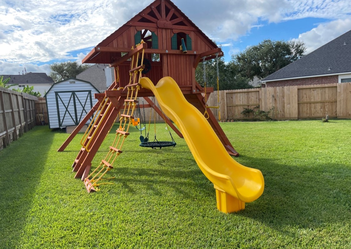 Tree Frogs playlets are designed with safety as our priority. We want our customers to have peace of mind that what they are investing in is as safe as possible. Every swing set is made with recessed hardware and smooth wood, as well as coated chains so fingers don’t get pinched.